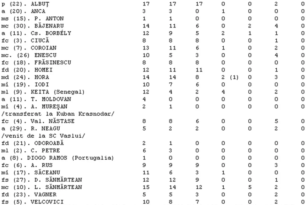 STATISTICĂ‚ LIGA I** Cifrele complete ale turului