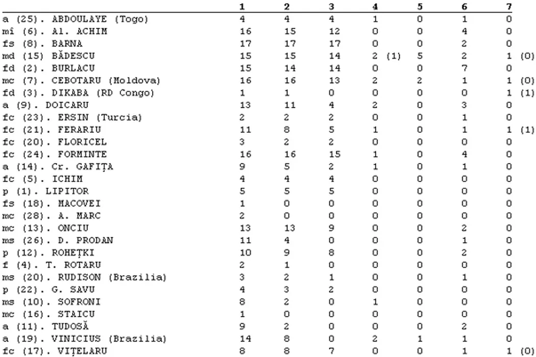 STATISTICĂ‚ LIGA I** Cifrele complete ale turului