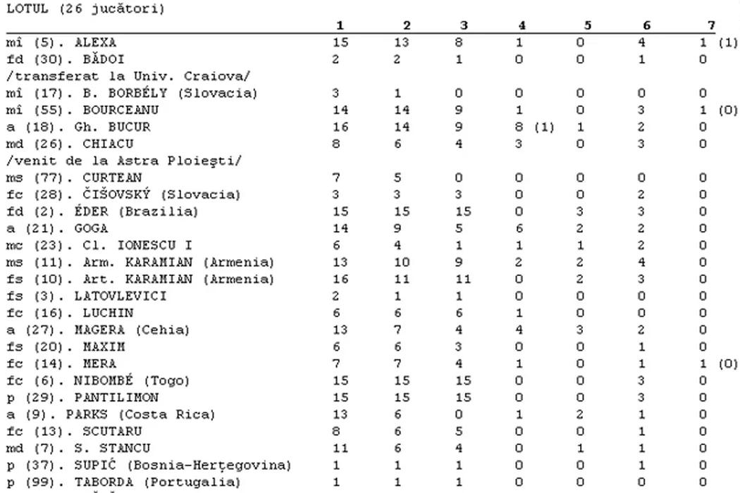STATISTICĂ‚ LIGA I** Cifrele complete ale turului