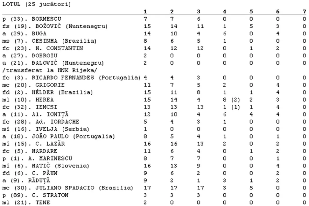 STATISTICĂ‚ LIGA I** Cifrele complete ale turului