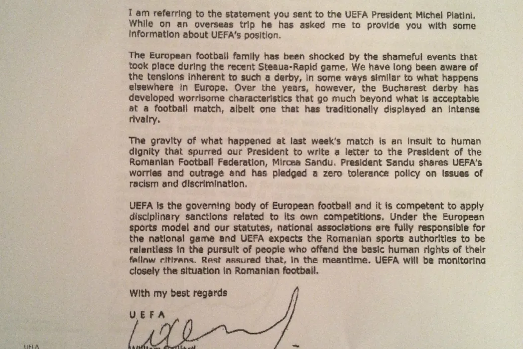 Steaua atârnă acum de un fir de ață!** FOTO Răspunsul OFICIAL dat de UEFA: „Suntem șocați! Ce s-a întâmplat acolo e pur și simplu rușinos!” Ce i-a promis Sandu lui Platini: