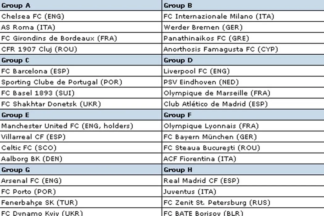 Steaua în grupă cu Lyon, Bayern și Fiorentina. CFR cu Chelsea, AS Roma și Bordeaux