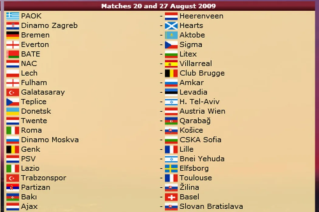 Steaua – Saint Patrick’s, Dinamo – Slovan Liberec, FK Sarajevo – CFR Cluj, SC Vaslui – AEK Atena