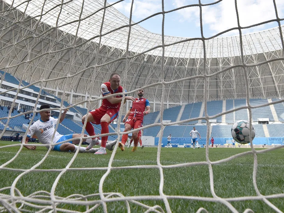 Stefan Baiaram inscrie un gol de langa Andrei Alexandru Patache si Enriko Papa in meciul de fotbal dintre Universitatea Craiova si FC Botosani, contand pentru Liga 1 Casa Pariurilor, desfasurat fara spectatori pe Stadionul Ion Oblemenco din Craiova, sambata 6 martie 2021. © FOTO:Razvan Pasarica/SPORT PICTURES