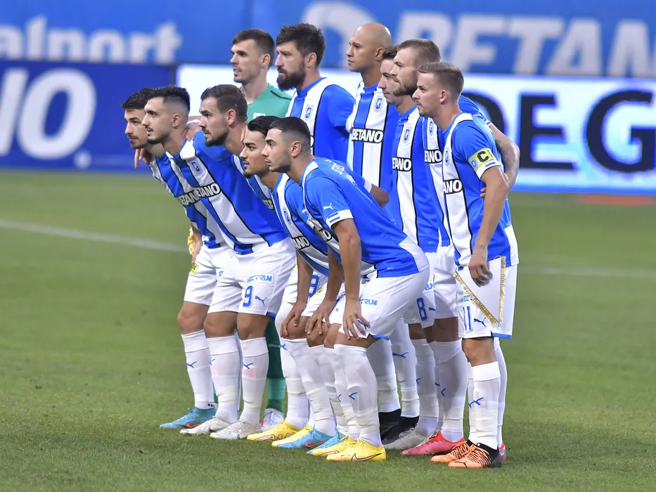 Fotbalistii craioveni la o fotografie de grup realizata inaintea meciului de fotbal dintre Universitatea Craiova si FC Zorya Luhansk, din cadrul UEFA Europa Conference League, desfasurat pe Stadionul Ion Oblemenco din Craiova, joi 11 august 2022. © FOTO:Razvan Pasarica/SPORT PICTURES
