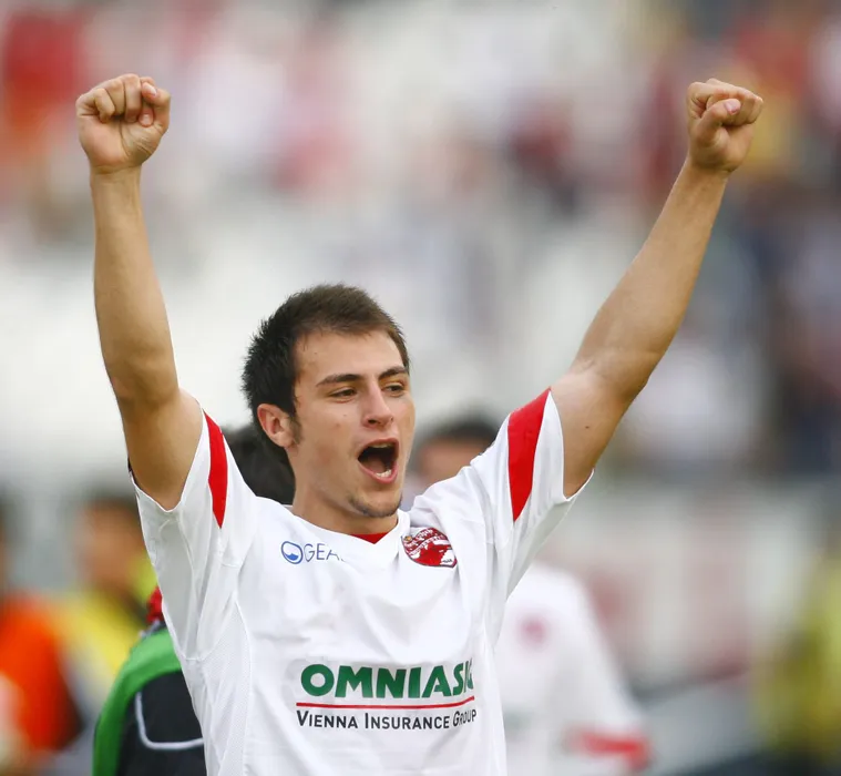 Radu Stefan, de la Dinamo Bucuresti, se bucura la finalul meciului cu Gloria Bistrita, din etapa a XXIX-a a Ligii I, disputat in Bucuresti, duminica, 29 aprilie 2007. BOGDAN MARAN / MEDIAFAX FOTO