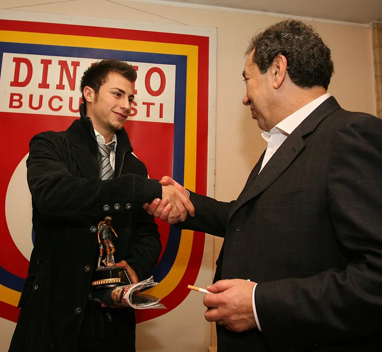 Radu Stefan este premiat de Nicolae Badea (D), la Gala Sportului Dinamovist, in Bucuresti, joi, 20 decembrie 2007. CONSTANTIN VLADESCU / MEDIAFAX FOTO
