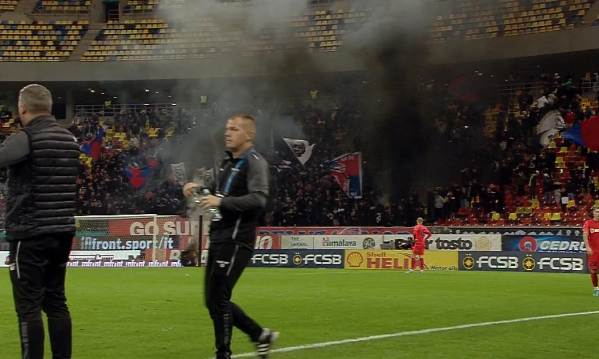 Ștefan Târnovanu, luat la țintă de ultrașii din Peluza Nord! FCSB – UTA, întrerupt după ce suporterii au aruncat cu materiale pirotehnice spre poarta gazdelor | VIDEO & FOTO