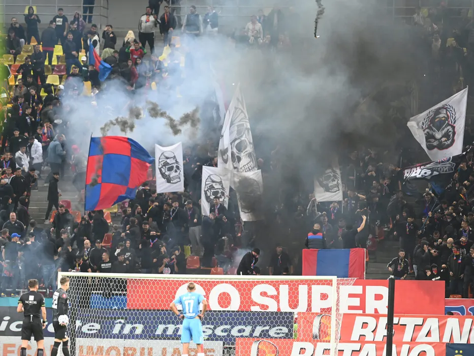 Ștefan Târnovanu, luat la țintă de ultrașii din Peluza Nord! FCSB – UTA, întrerupt după ce suporterii au aruncat cu materiale pirotehnice spre poarta gazdelor | VIDEO & FOTO