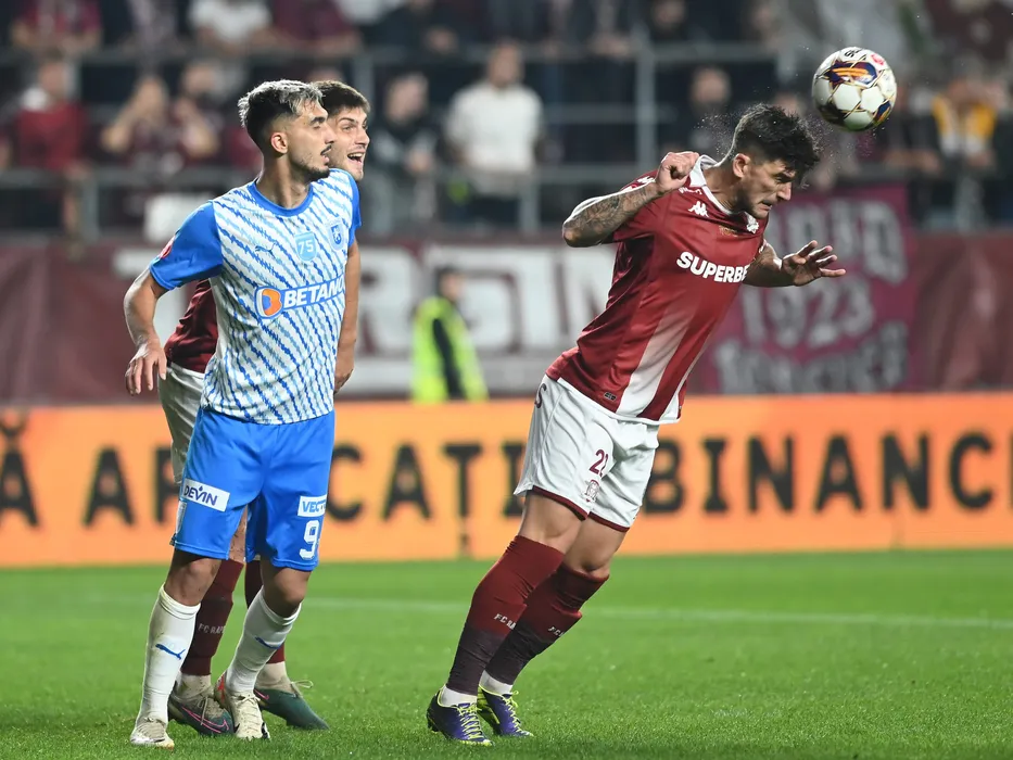 Andrei Virgil Ivan si Cristian Ionut Sapunaru in meciul de fotbal dintre Rapid Bucuresti si Universitatea Craiova, din cadrul Superligii Superbet, desfasurat pe Superbet Arena-Giulesti din Bucuresti, duminica 29 octombrie 2023. © FOTO:Razvan Pasarica/SPORT PICTURES
