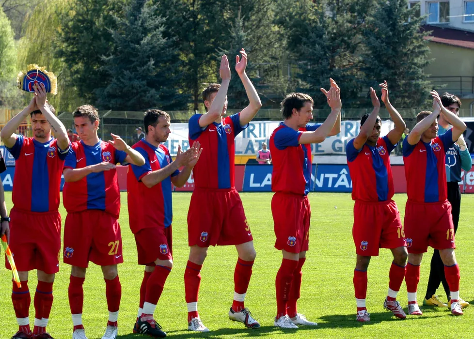 Echipa Steaua saluta publicul la inceputul partidei.De la stanga la dreapta:Mirel Radoi,Stelian Stancu,Sorin Paraschiv,Victoras Iacob,Banel Nicolita si Eugen Baciu.