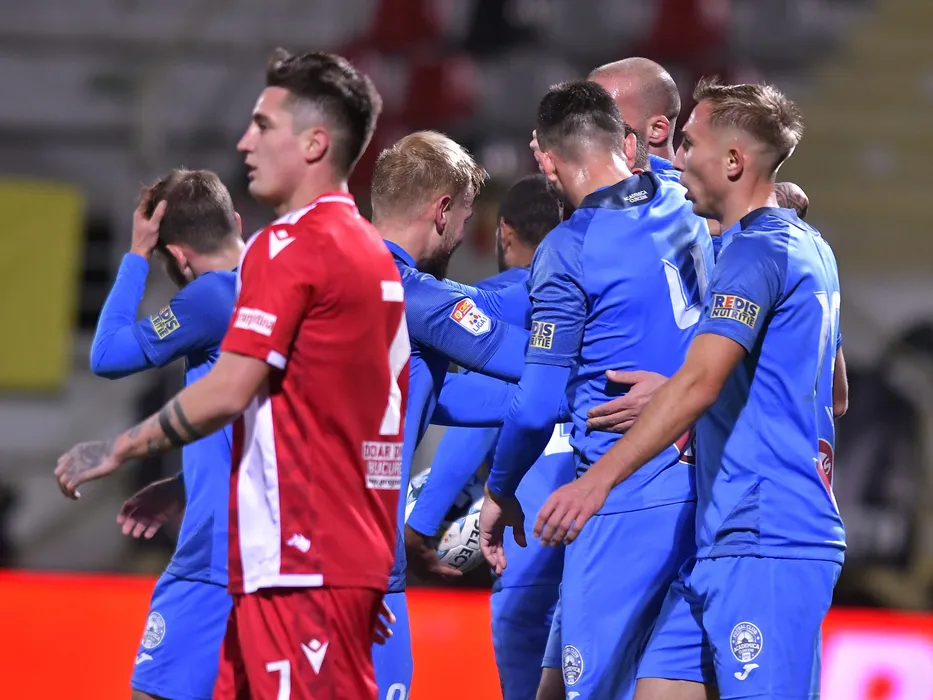 Bucurie a fotbalistilor din Clinceni dupa un gol marcat cu Denis Ventura in meciul de fotbal dintre Academica Clinceni si Dinamo Bucuresti, contand pentru Liga 1 Casa Pariurilor, desfasurat pe Stadionul Marin Anastasovici din Giurgiu, vineri 3 decembrie 2021. © FOTO:Razvan Pasarica/SPORT PICTURES