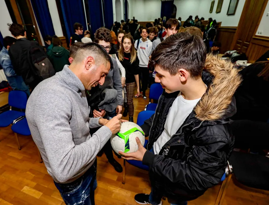 Stelista Mihaela Buzărnescu și dinamovistul Ionel Dănciulescu au făcut echipă în fața liceenilor: „Sper că am fost un exemplu” | FOTO