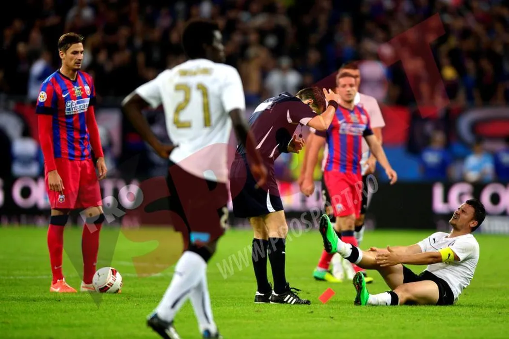 Stelistul Sânmărtean, eliminat pentru o intrare criminală la Budescu. Este a doua eliminare din cariera mijlocașului