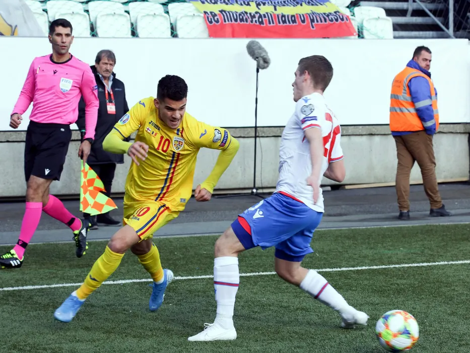 Ianis Hagi in meciul de fotbal dintre Insulele Faroe si Romania, contand pentru Preliminariile Campionatului European din 2020, desfasurat pe Stadionul Torsvollur din Torshavn, sambata 12 octombrie 2019. © FOTO:SPORT PICTURES