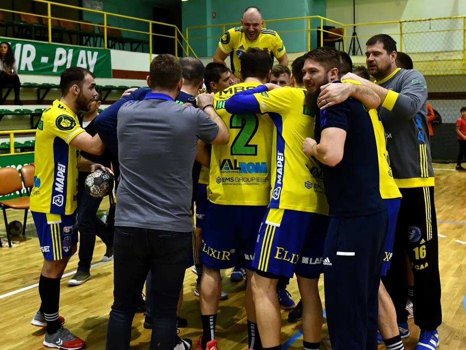 Bucurie a handbalistilor din Turda dupa meciul de handbal masculin dintre Steaua Bucuresti si Potaissa Turda, contand pentru Liga Florilor, desfasurat in Sala Sporturilor Concordia din Chiajna, joi 27 februarie 2019. © FOTO:Razvan Pasarica/SPORT PICTURES