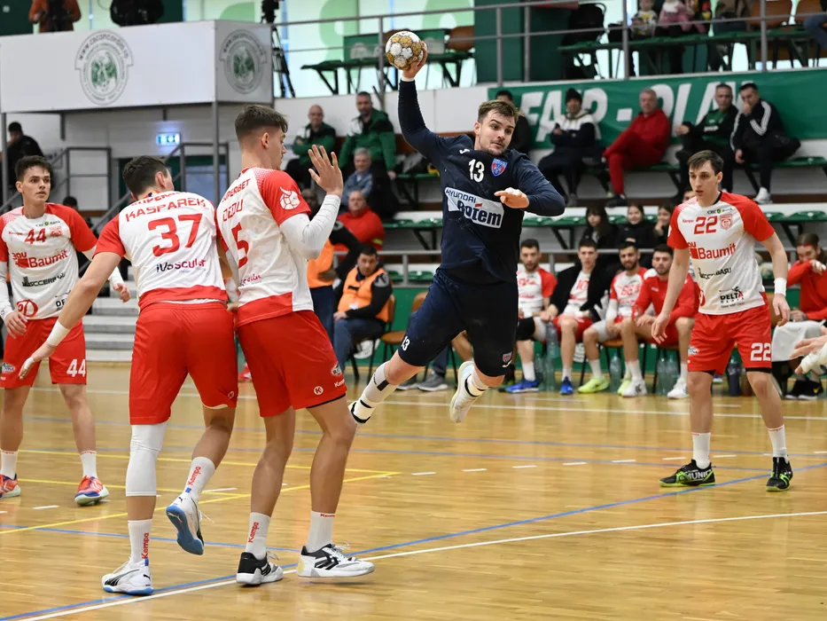 Daniel Stanciuc, Stanislav Kasparek, Calin Dedu, Stefan-Valentin Neagu si Tudor Bogan Bugulet in meciul de handbal masculin dintre Steaua Bucuresti si Dinamo Bucuresti, contand pentru Liga Zimbrilor, desfasurat in Sala Sporturilor Concordia din Chiajna, sambata 8 februarie 2025. © FOTO:Razvan Pasarica/SPORT PICTURES