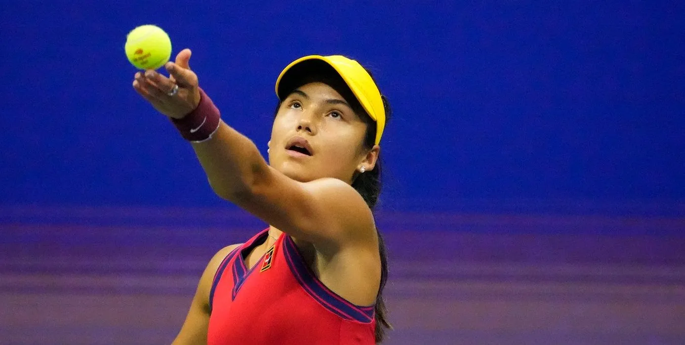 Sep 9, 2021; Flushing, NY, USA; Emma Raducanu of Great Britain serves against Maria Sakkari of Greece (not pictured) on day eleven of the 2021 U.S. Open tennis tournament at USTA Billie Jean King National Tennis Center.,Image: 631325326, License: Rights-managed, Restrictions: *** World Rights ***, Model Release: no, Credit line: Profimedia