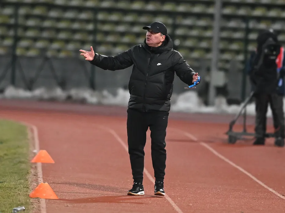 Gheorghe Hagi reactioneaza in meciul de fotbal dintre FC Arges si Farul Constanta, contand pentru Superliga Superbet, desfasurat pe Stadionul Nicolae Dobrin din Pitesti, duminica 12 februarie 2023. © FOTO:Razvan Pasarica/SPORT PICTURES