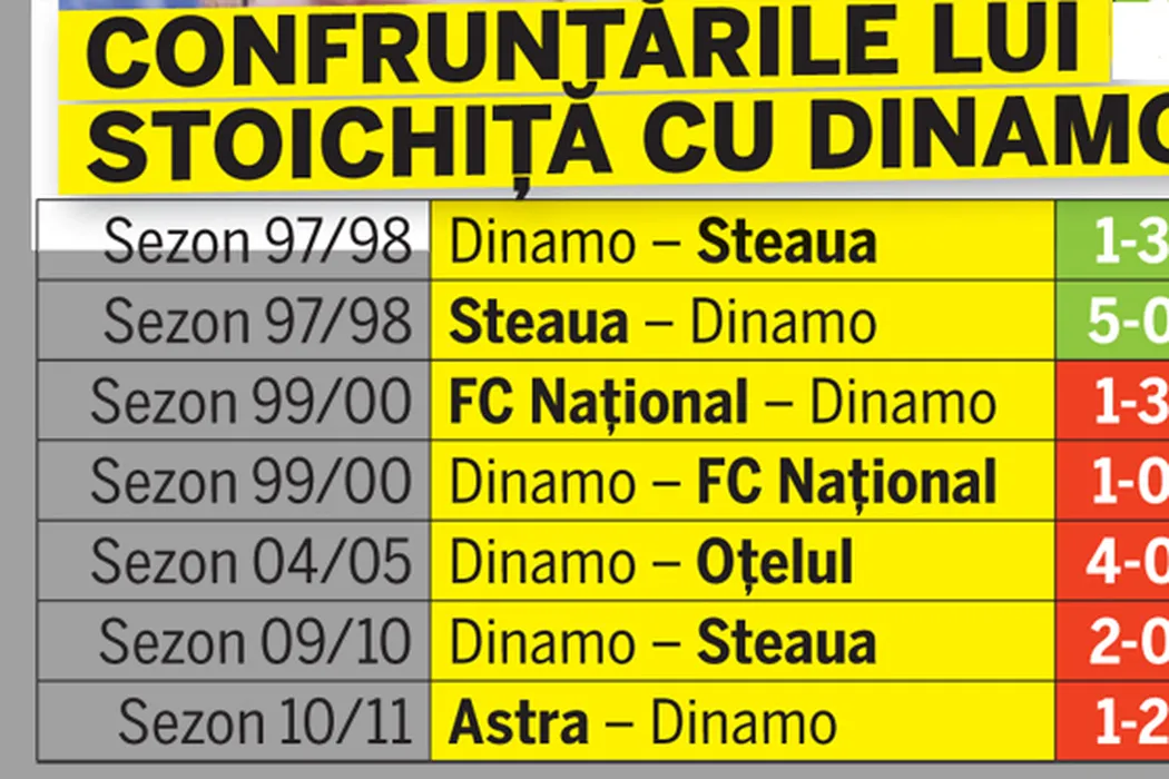 Stoichiță lovește din nou:)** Tehnicianul consideră că are un ascendent moral asupra lui Dinamo, realitatea îl contrazice: 5 înfrângeri din 5 în ultimii 14 ani!