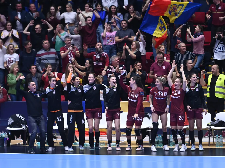 Handbalistele rapidiste bucuroase la finalul meciului de handbal feminin dintre Rapid Bucuresti si Gyor Audi Eto KC, contand pentru Liga Campionilor, desfasurat in Sala Polivalenta-Ioan Kunst Ghermanescu din Bucuresti, duminica 11 decembrie 2022. © FOTO:Razvan Pasarica/SPORT PICTURES