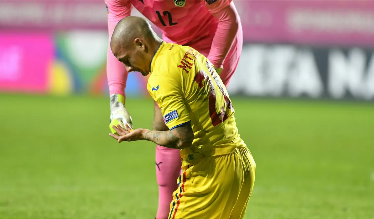 Ionut Mitrita in genunchi in meciul de fotbal dintre Romania si Austria, contand pentru Liga Natiunilor, desfasurat fara spectatori pe Stadionul Ilie Oana din Ploiesti, miercuri 14 octombrie 2020. © FOTO:Razvan Pasarica/SPORT PICTURES