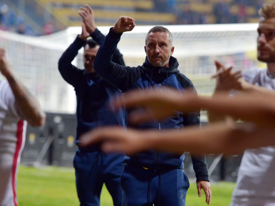 Mihai Stoica saluta galeria dupa meciul de fotbal dintre Sepsi OSK Sfantu Gheorghe si FC Steaua Bucuresti, din cadrul Ligii 1 Betano, desfasurat pe stadionul Tineretului din Brasov,duminica 1 octombrie 2017. © FOTO Razvan Pasarica/SPORT PICTURES