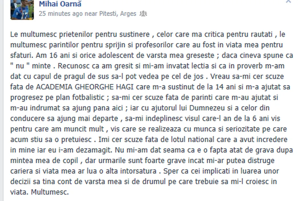 Strigătul disperat al unui puști care recunoaște că a greșit: „Iertați-mă, nu-mi luați visul de a deveni fotbalist!”
