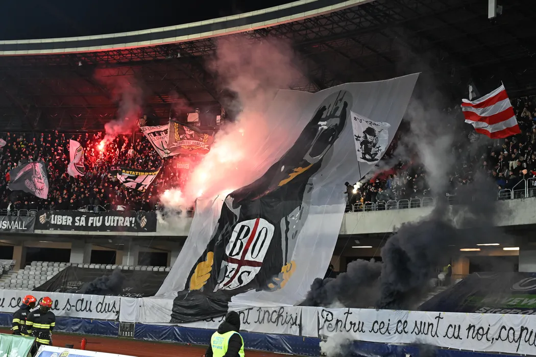 Galeria clujeana cu torte si fumigene in peluza la meciul de fotbal dintre Universitatea Cluj si FCSB, contând pentru Superliga Superbet, desfășurat pe Cluj Arena din Cluj Napoca, duminica 10 noiembrie 2024. © FOTO:Răzvan Pasarica/SPORT PICTURES