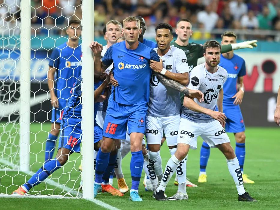 Joonas Tamm, Kevin Aleksander Kabran si Sondre Flem Bjørshol in meciul de fotbal dintre FCSB si FK Viking Stavanger, din cadrul play-off-ului UEFA Europa Conference League, desfasurat pe Arena Nationala din Bucuresti, joi 18 august 2022. © FOTO:Razvan Pasarica/SPORT PICTURES