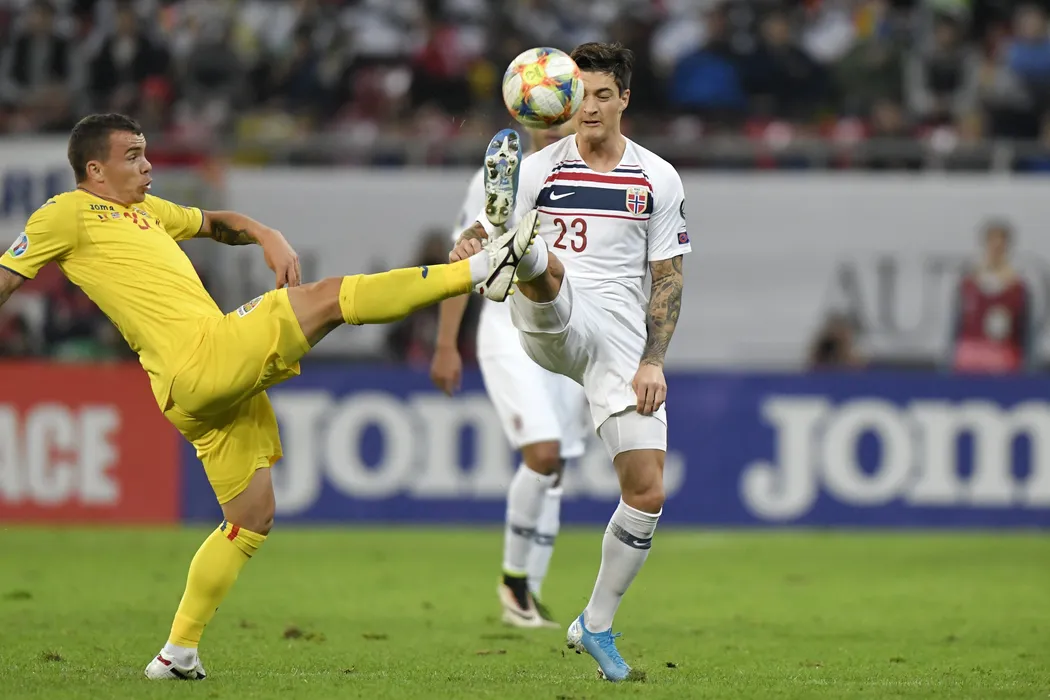 (D), de la nationala Norvegiei, in meciul de fotbal din Grupa F a preliminariilor Euro 2020, disputat pe Arena Nationala din Bucuresti, marti, 15 octombrie 2019. ANDREEA ALEXANDRU / MEDIAFAX FOTO