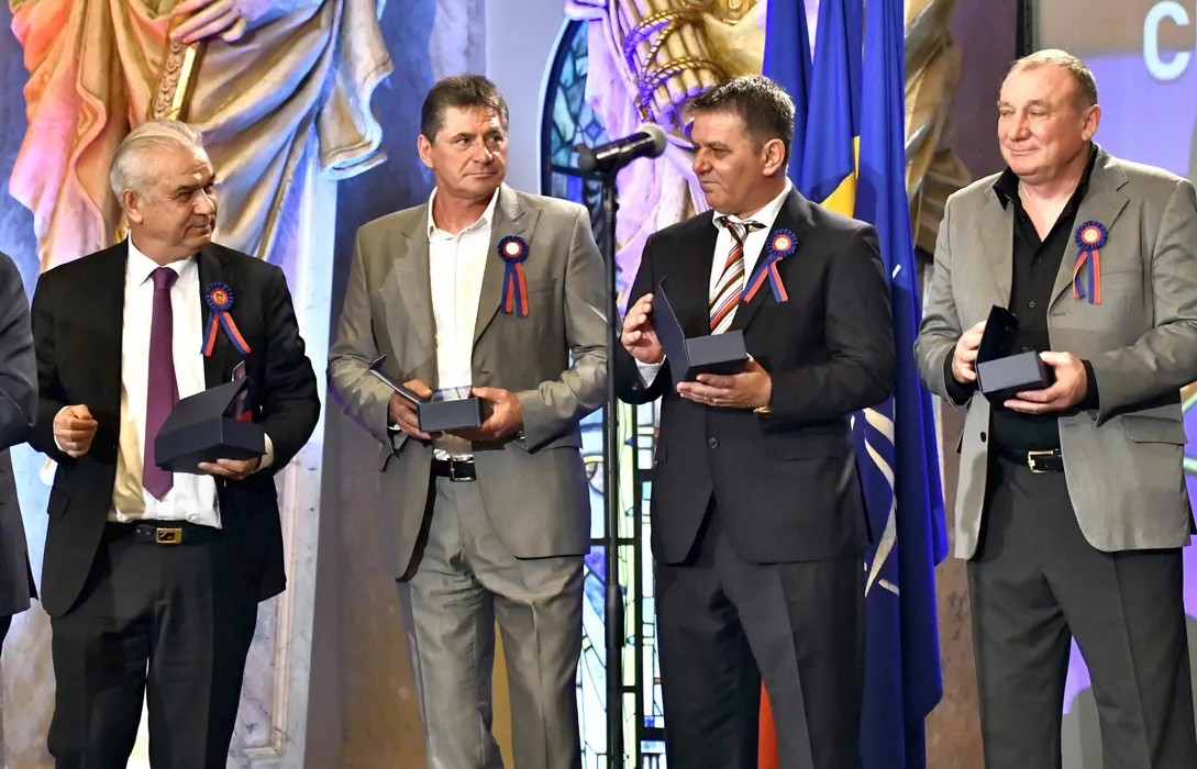 Anghel Iordanescu,Marius Lacatus,Stefan Iovan si Adrian Bumbescu in cadrul festivitatii de aniversare a 70 de ani de la infiintarea CSA Steaua Bucuresti, actiune desfasurata in Sala de Marmura a Cercului Militar National din Bucuresti, marti 6 iunie 2017. Razvan Pasarica/SPORT PICTURES