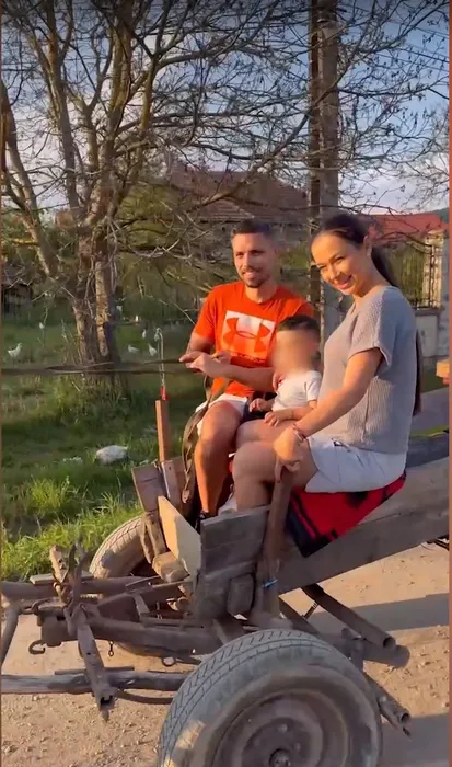 „Suntem niște țărani!”. Vlăduța Lupău și fostul fotbalist al lui CFR Cluj, imagini neașteptate, în căruță, pe ulița din sat
