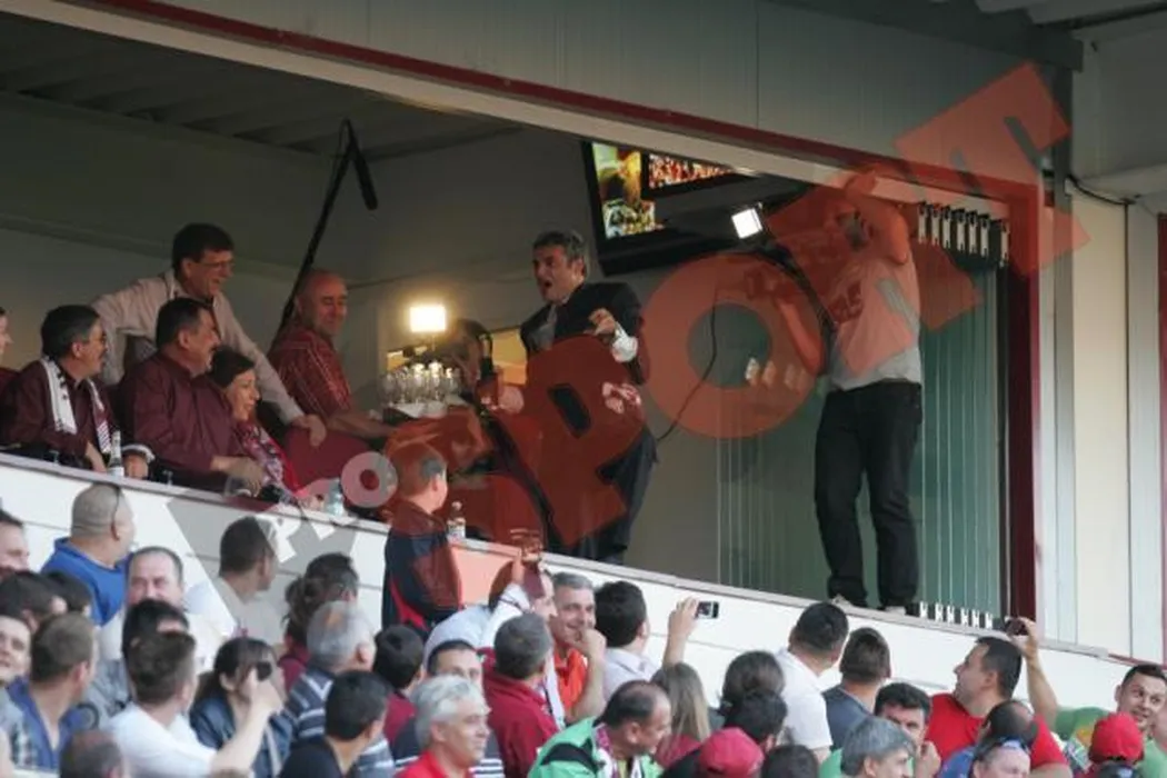 SUPER FOTO Becali, ironizat în loja din Gruia!** Cum a fost parodiat patronul Stelei