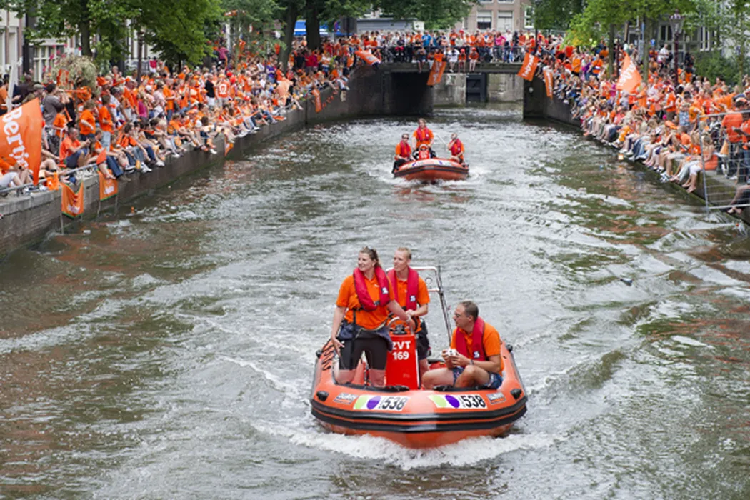 SUPER FOTO** Primire de gală pentru eroii Olandei! Sneijder și compania au defilat pe canalele din Amsterdam