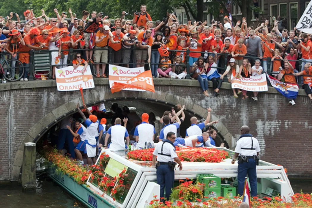 SUPER FOTO** Primire de gală pentru eroii Olandei! Sneijder și compania au defilat pe canalele din Amsterdam