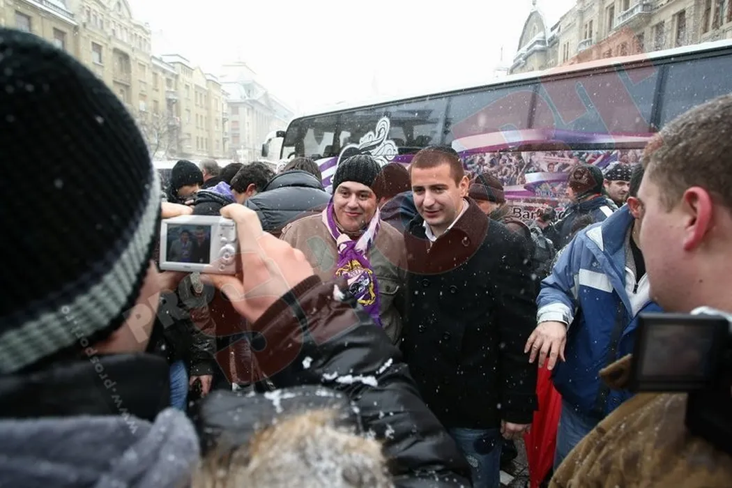 SUPER GALERIE FOTO** Uhrin s-a reîntâlnit cu fanii și jucătorii lui Poli! VEZI noul design al autocarului timișorenilor