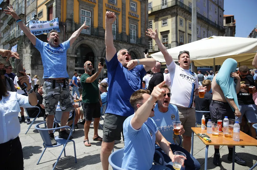 May 29, 2021, Porto, United Kingdom: Porto, Portugal, 29th May 2021. Manchester City fans enjoy the sunshine before the UEFA Champions League match at the Estadio do Dragao, Porto. Picture credit should read: David Klein / Sportimage,Image: 613188902, License: Rights-managed, Restrictions: , Model Release: no, Credit line: Profimedia
