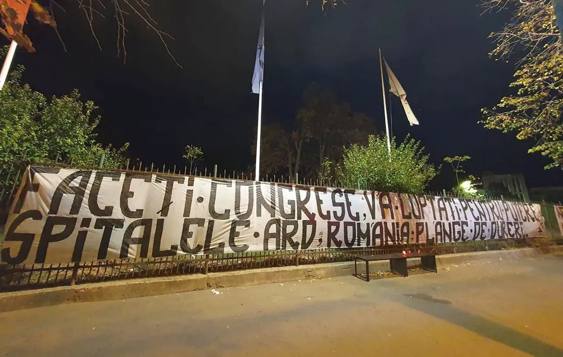 Suporterii Farului, protest în Constanța după incendiul în care au murit șapte oameni: „Spitalele ard, România plânge de durere”