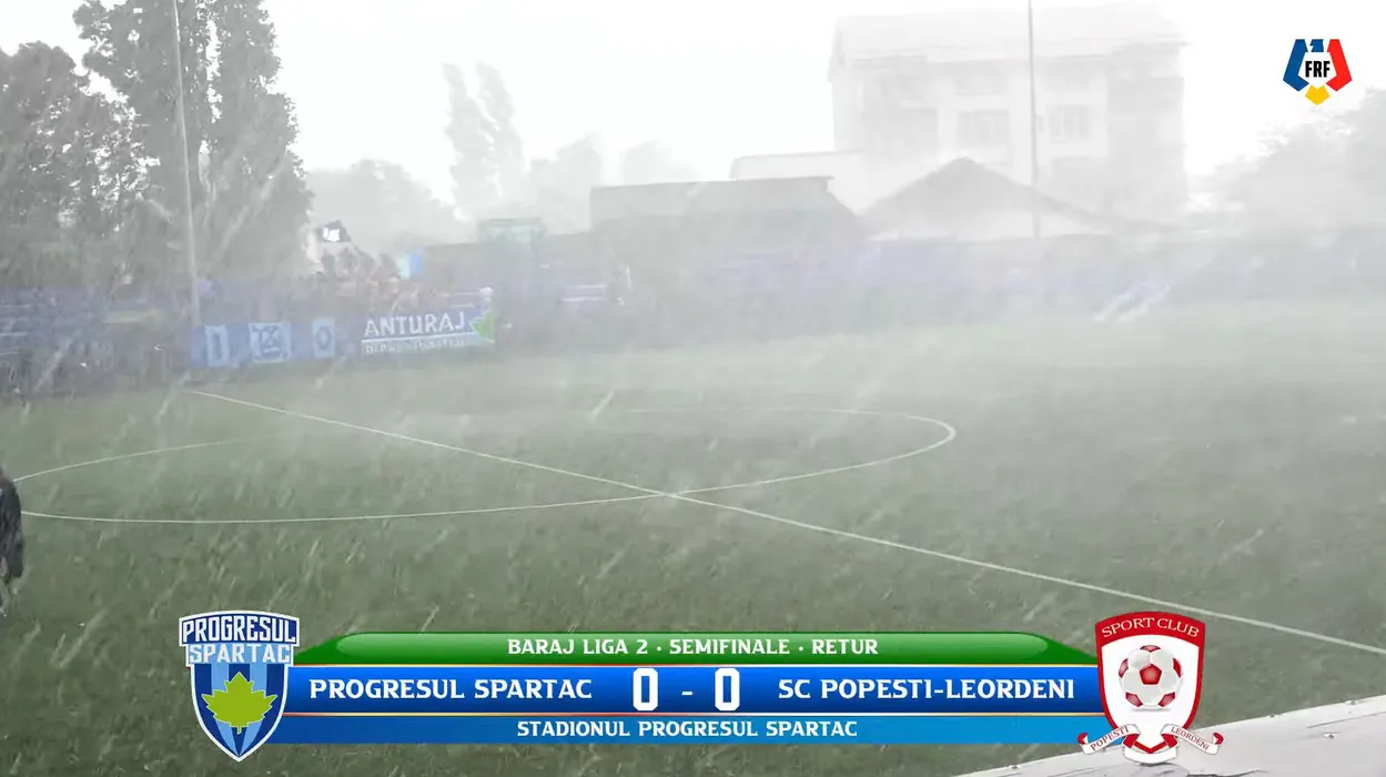 Suporterii, la bustul gol în timpul furtunii! Grindina a întrerupt un meci de baraj și a golit stadionul. Doar câțiva curajoși au rămas pe poziții | FOTO
