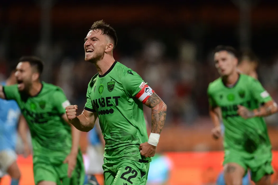 Deian Sorescu, de la FC Dinamo, reactioneaza dupa inscrierea unui gol in timpul meciului de fotbal contra echipei FC Voluntari din prima etapa a Ligii 1, disputat pe stadionul Dinamo din Bucuresti, luni, 19 iulie 2021. EDUARD VINATORU / MEDIAFAX FOTO