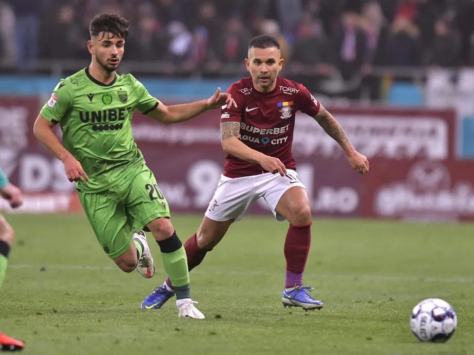 Antonio Alexandru Bordusanu si Morais Junior Iraneuton Sousa in meciul de fotbal dintre Rapid Bucuresti si Dinamo Bucuresti, contand pentru Liga 1 Casa Pariurilor, desfasurat pe Arena Nationala din Bucuresti, sambata 26 februarie 2022. © FOTO:Razvan Pasarica/SPORT PICTURES