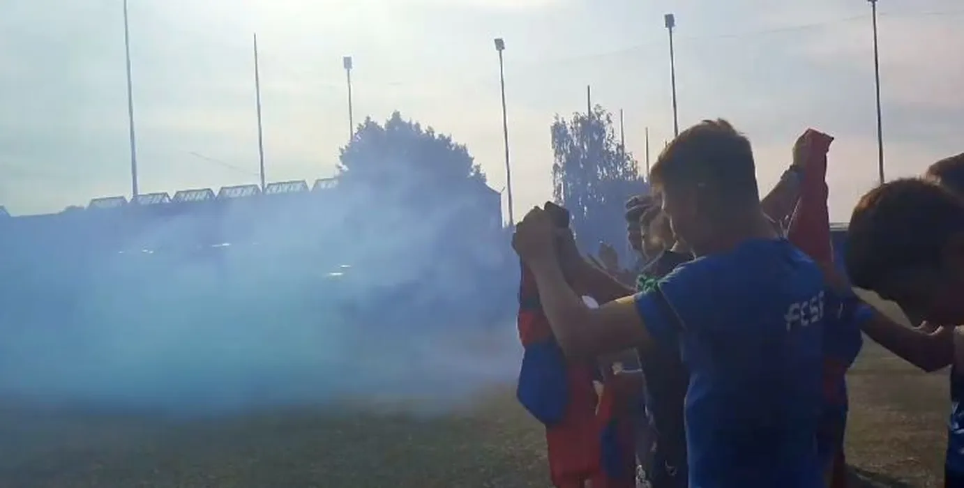 Suporterii lui FCSB au făcut spectacol la baza din Berceni! Sărbătoare cu fumigene și cântece, după ce echipa U15 a câștigat campionatul și Cupa României! | VIDEO
