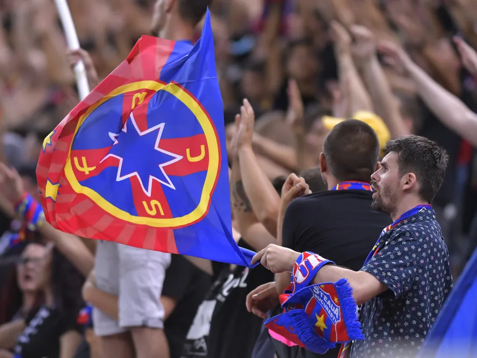 Suporteri stelisti flutarand steaguri in peluza la meciul de fotbal dintre FCSB si FC Shakhter Karagandy, contand pentru Turul 2 preliminar din cadrul UEFA Confrence League, desfasurat pe Arena Nationala din Bucuresti, joi 22 iulie 2021. © FOTO:Razvan Pasarica/SPORT PICTURES