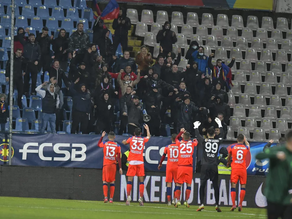 Fotbalistii stelisti saluta galeria dupa meciul de fotbal dintre FCSB si CS Mioveni, contand pentru Liga 1 Casa Pariurilor, desfasurat pe Stadionul Gloria din Buzau, sambata 16 octombrie 2021. © FOTO:Razvan Pasarica/SPORT PICTURES