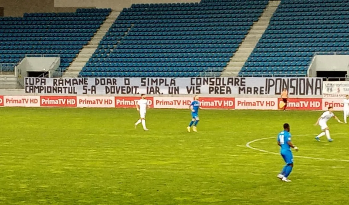 Suporterii Universității Craiova, mesaj dur la Târgu Jiu: „Cupa României, doar o palidă consolare” | FOTO