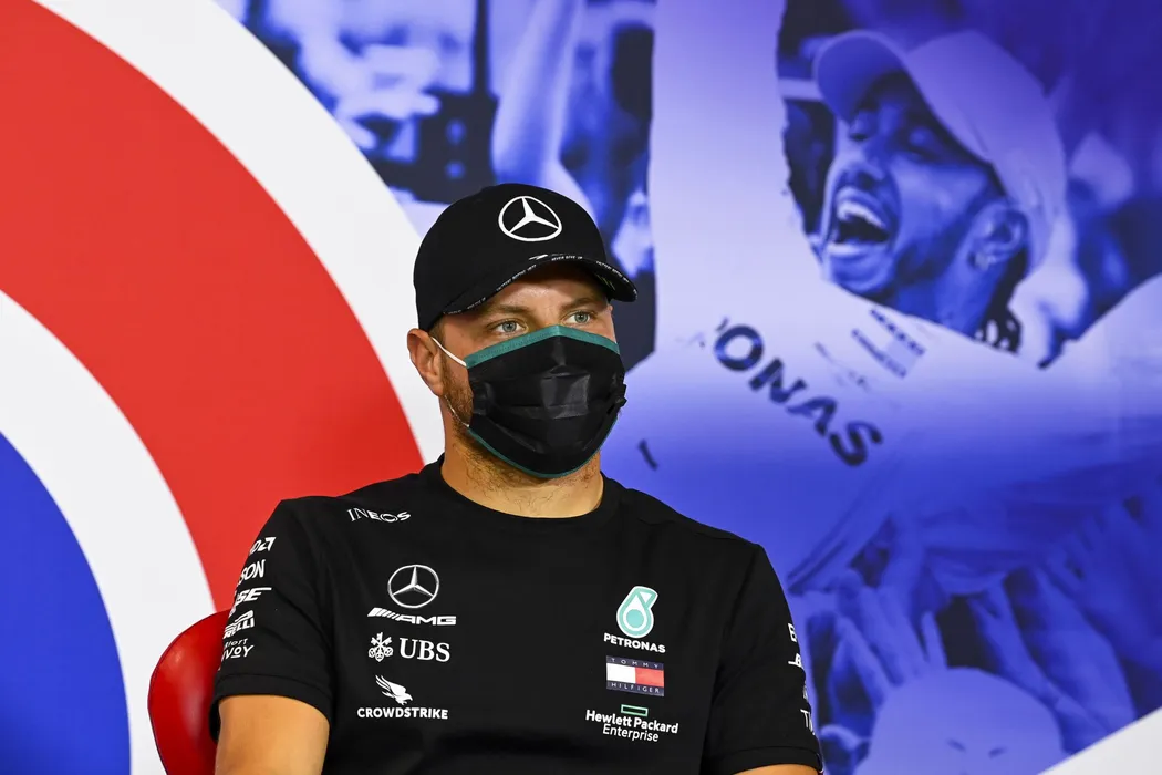 06 August 2020, England, Northampton: Finnish Formula One driver Valtteri Bottas of Mercedes-AMG Petronas attends the drivers press conference for the 70th Anniversary Formula One Grand Prix in Silverstone Circuit. Photo: Mark Sutton/Fia Pool via PA Wire/dpa