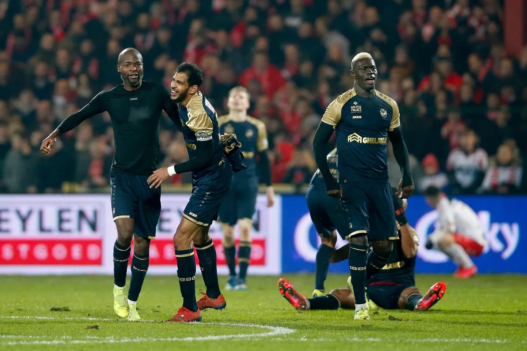 February 6, 2020, Kortrijk, BELGIUM: Antwerp's players celebrate after a soccer game between KV Kortrijk and Royal Antwerp FC, Thursday 06 February 2020 in Kortrijk, in the return leg of the semifinal of the 'Croky Cup' Belgian cup. BELGA PHOTO BRUNO FAHY, Image: 496888436, License: Rights-managed, Restrictions: * EXCLUSIVE to ZUMA: Belgium, France, Germany, Luxembourg and Netherlands Rights OUT *, Model Release: no, Credit line: Bruno Fahy / Zuma Press / Profimedia