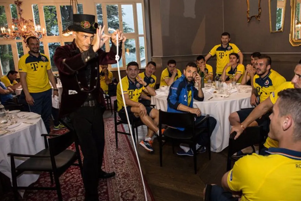 Surpriză pentru tricolori! VIDEO | Spectacol de iluzionism în cantonamentul naționalei. „Magicianul” Sânmărtean, neimpresionat :)