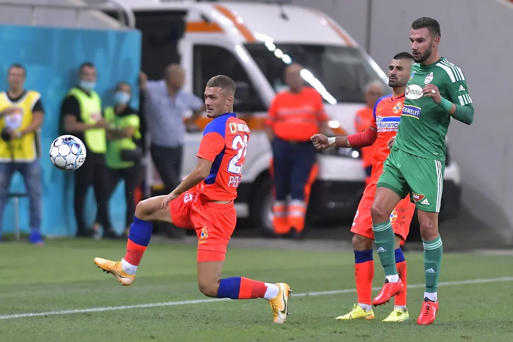 Ovidiu Ioan Perianu, Valentin Cretu si Tsvetelin Chunchucov in meciul de fotbal dintre FCSB si Sepsi OSK Sfantu Gheorghe, contand pentru Liga 1 Casa Pariurilor, desfasurat pe Arena Nationala din Bucuresti, luni 23 august 2021. © FOTO:Razvan Pasarica/SPORT PICTURES